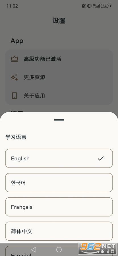 點擊右下角設置按鈕,選擇需要學習的語言和母語